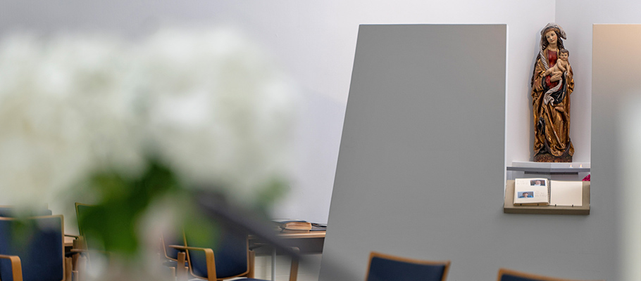 Unsere hauseigene Kapelle ist rund um die Uhr geöffnet – für ein stilles Gebet, eine kurze Andacht oder einen Moment der Einkehr. Zweimal in der Woche feiern wir die Heilige Messe. Zusätzlich finden regelmäßig evangelische Gottesdienste sowie ein besonderer Gottesdienst für Menschen mit Demenz statt.