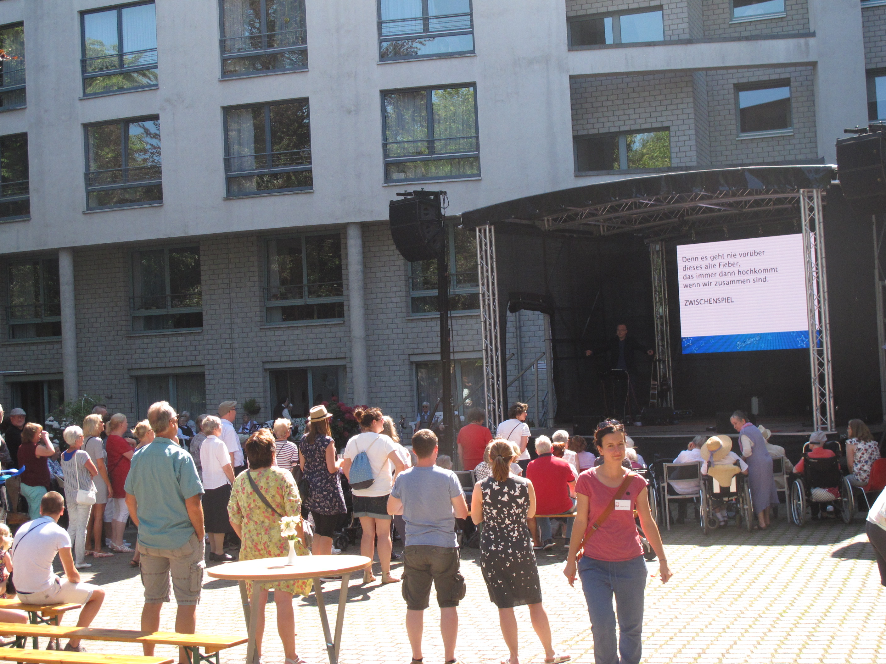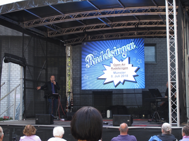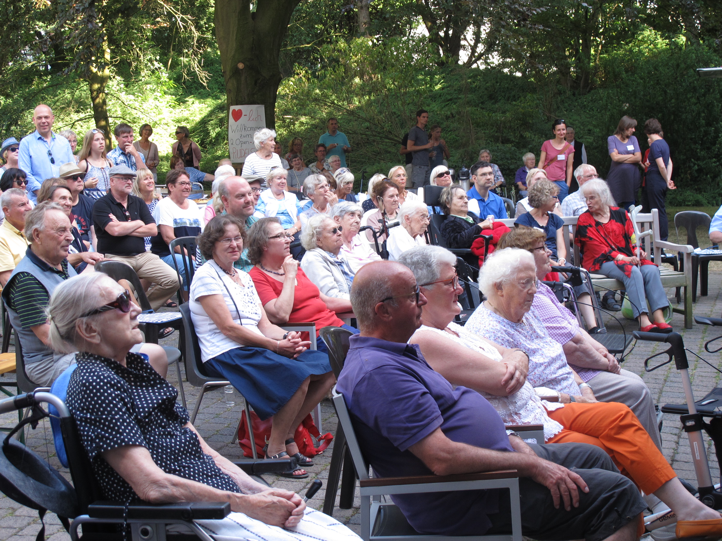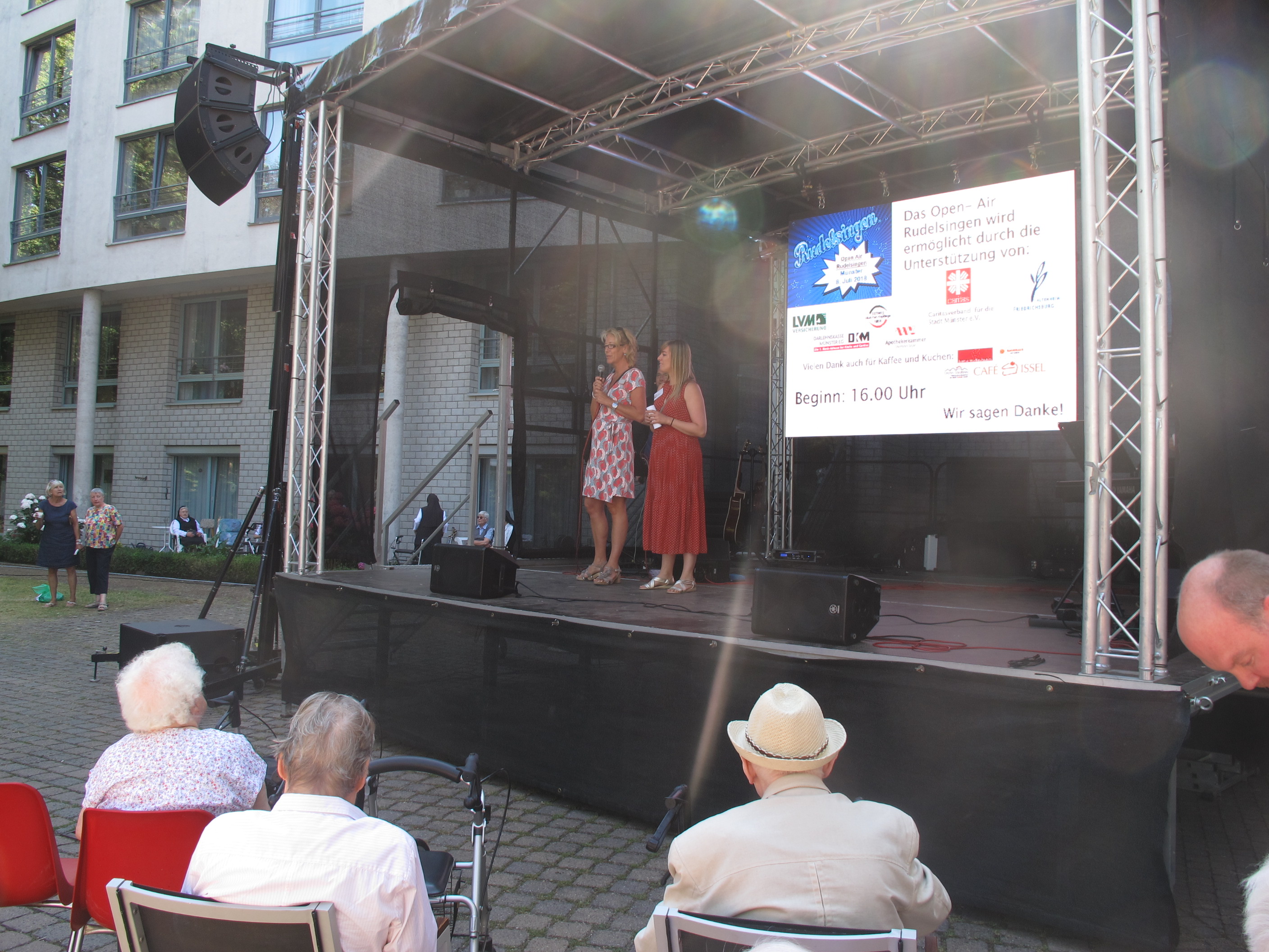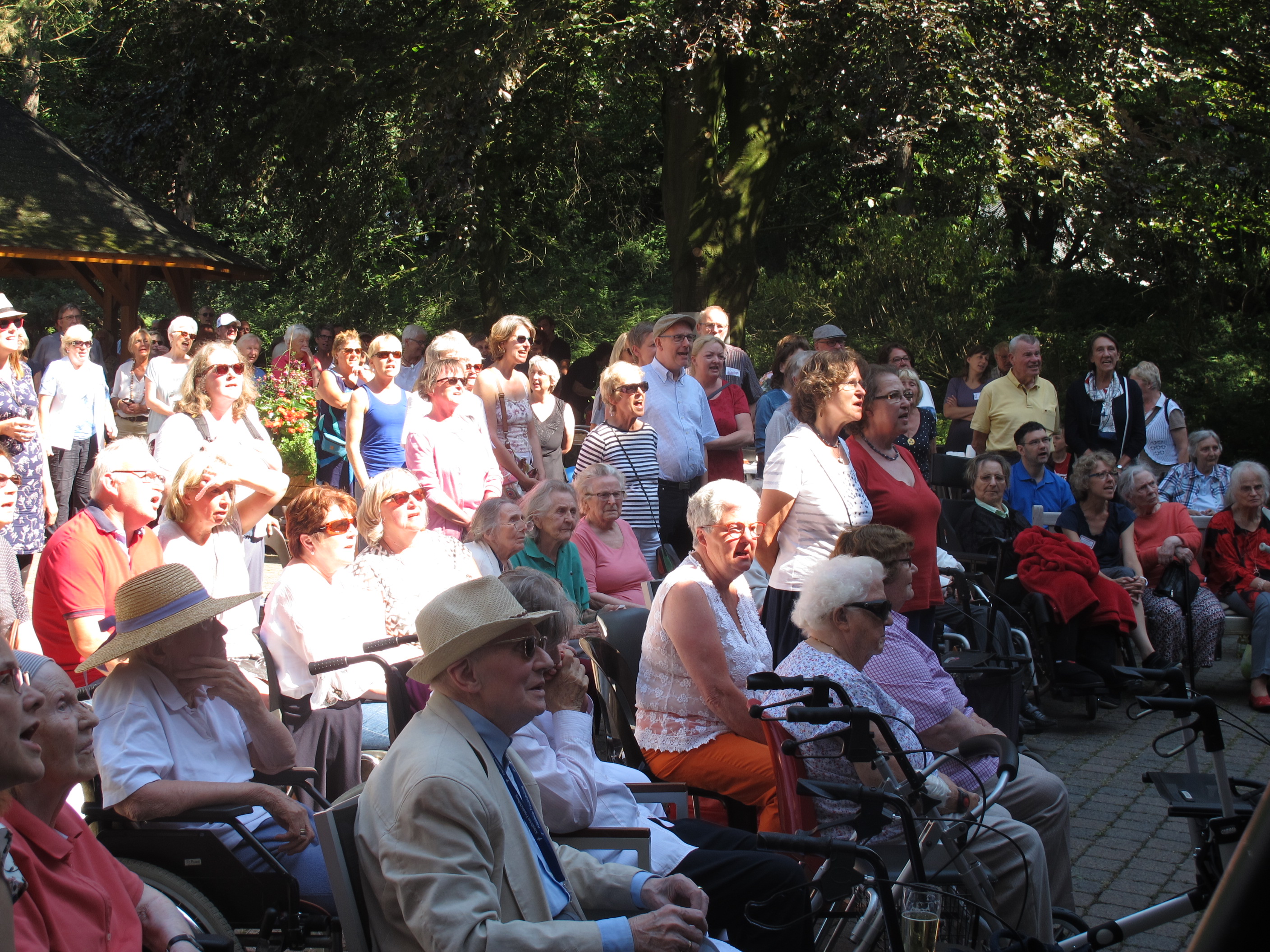 Das zweite Open Air Rudelsingen im Quartier Pluggendorf/Aaseestadt fand im Garten des Altenheims Friedrichsburg statt.