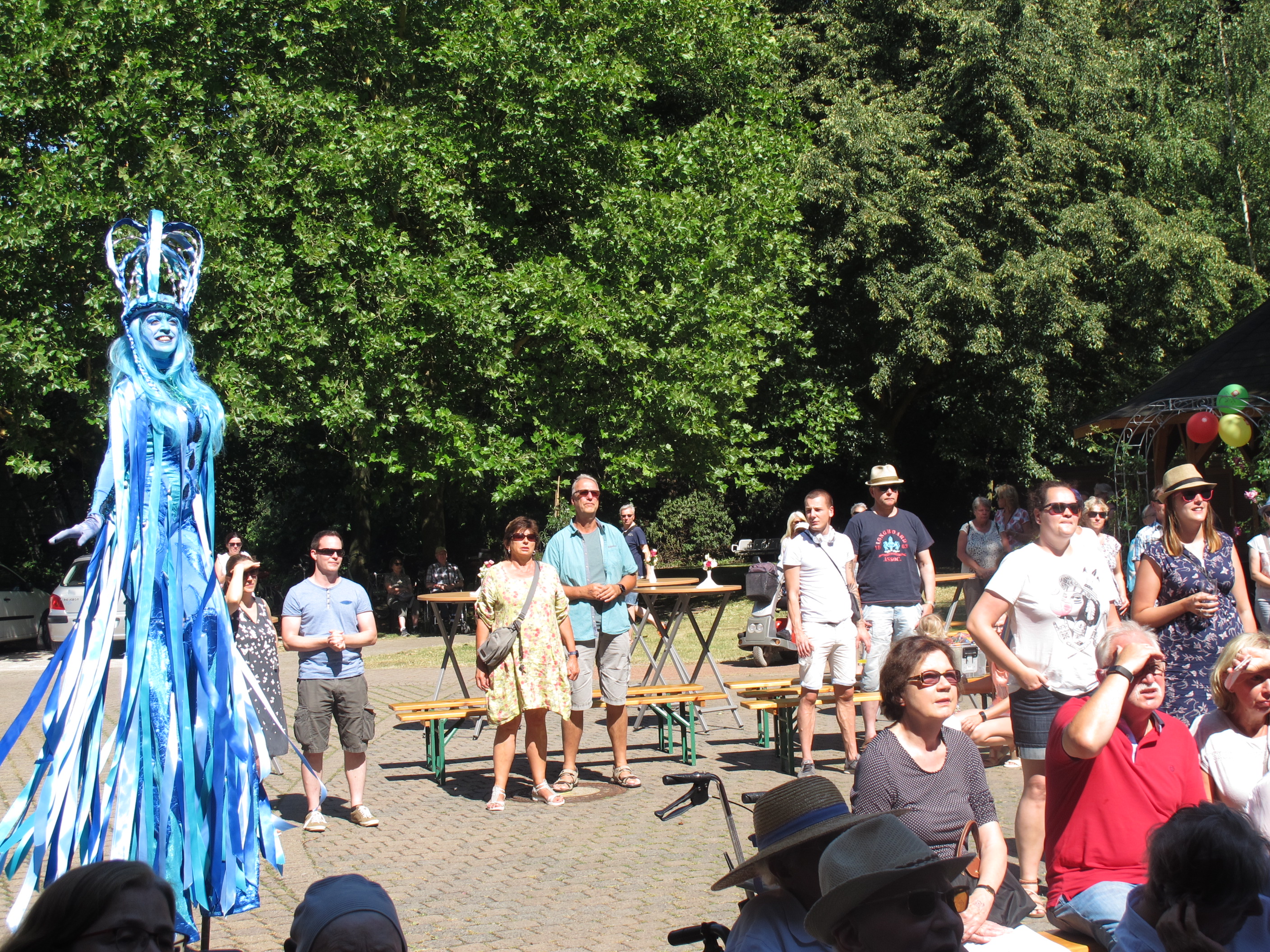 Gesungen wurde ein buntes Sommerprogamm mit Hits wie "Help" von den Beatles, das Kufsteinlied oder die Biene Maja für die Kinder. Der Song "Flieger grüß mir die Sonne" kam bei den älteren Besuchern besonders gut an. Aurora von imagine-performances rief als "Aquania" auf Hochstelzen Erstaunen und Bewunderung hervor.