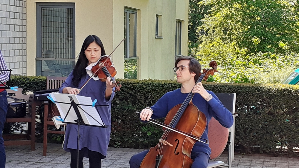 Am 7.05.2020 spielten Yuki Kimura- Zukauskas (Violine) und Giedrus Zukauskas (Violoncello) das 7. Terrassenkonzert in unserem Haus. Wir bedanken uns ganz herzlich bei den Musikern des Sinfonieorchesters Münster, die durch die Bürgerstiftung Münster an uns vermittelt wurden.