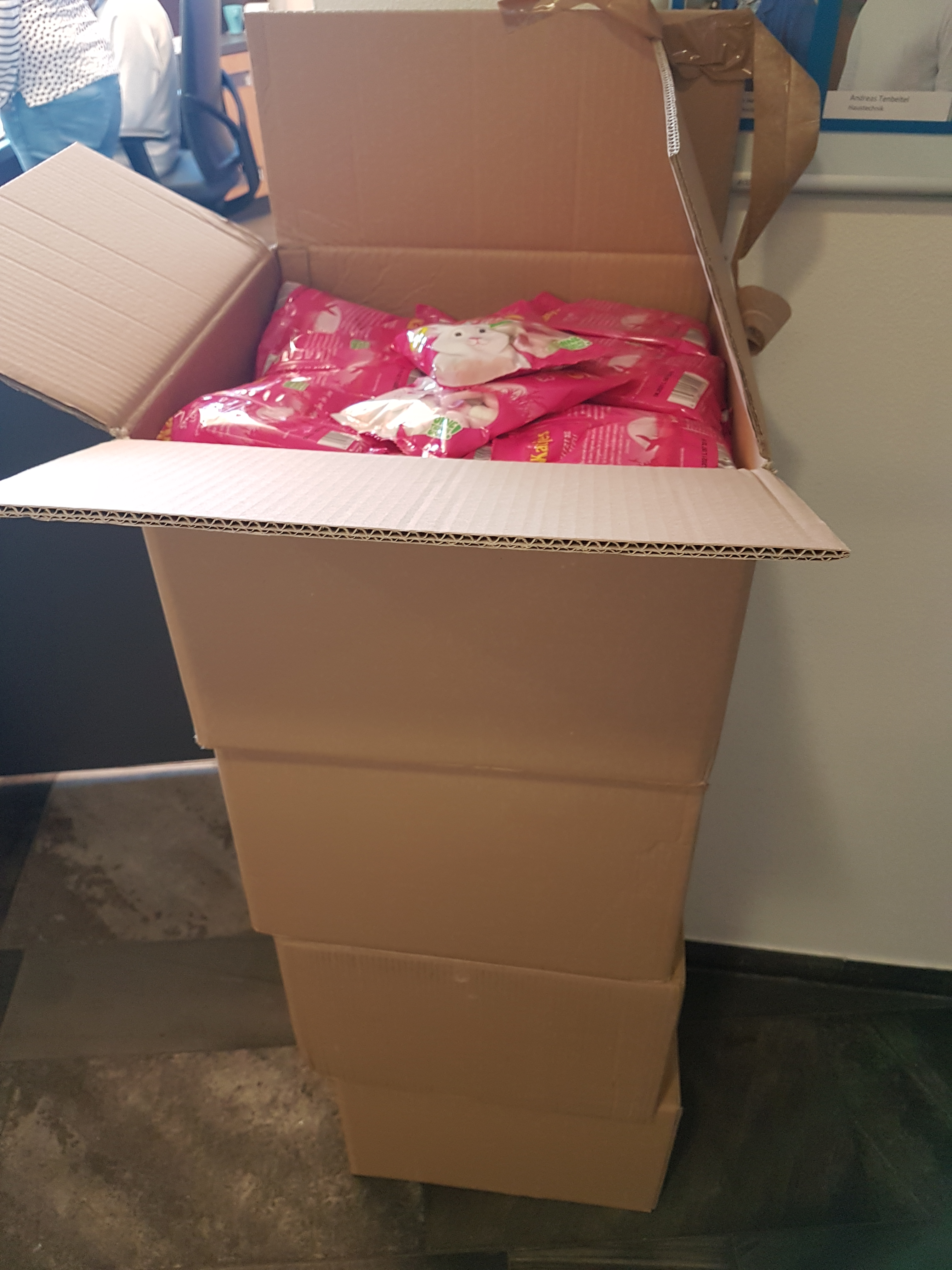 Auch von der DKM Münster erreichte uns ein Ostergruß. In Kooperation mit der Firma Katjes erhielten wir einige Kartons mit „Frucht- Gummi- Osterhasen“.