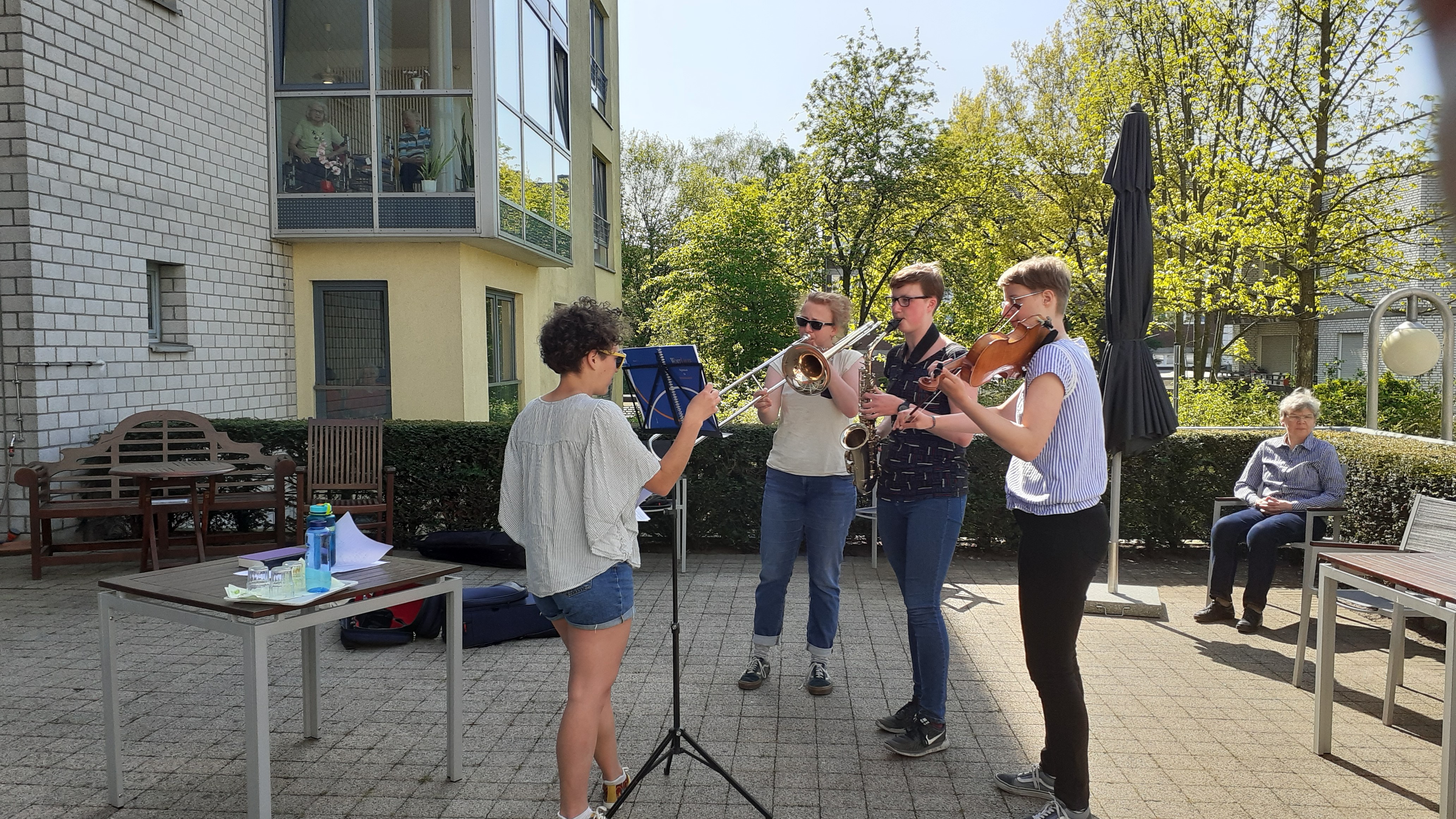 Zudem bedanken wir uns ganz herzlich bei zahlreichen Ehrenamtlichen, die uns in den letzten Wochen mit ihren musikalischen Einlagen auf unserer Terrasse unterhalten und aus dem Alltag entführt haben. Hierzu zählt auch die Zusammenarbeit mit der Bürgerstiftung Münster. In diesen Tagen findet bereits das 6. Terrassenkonzert statt.