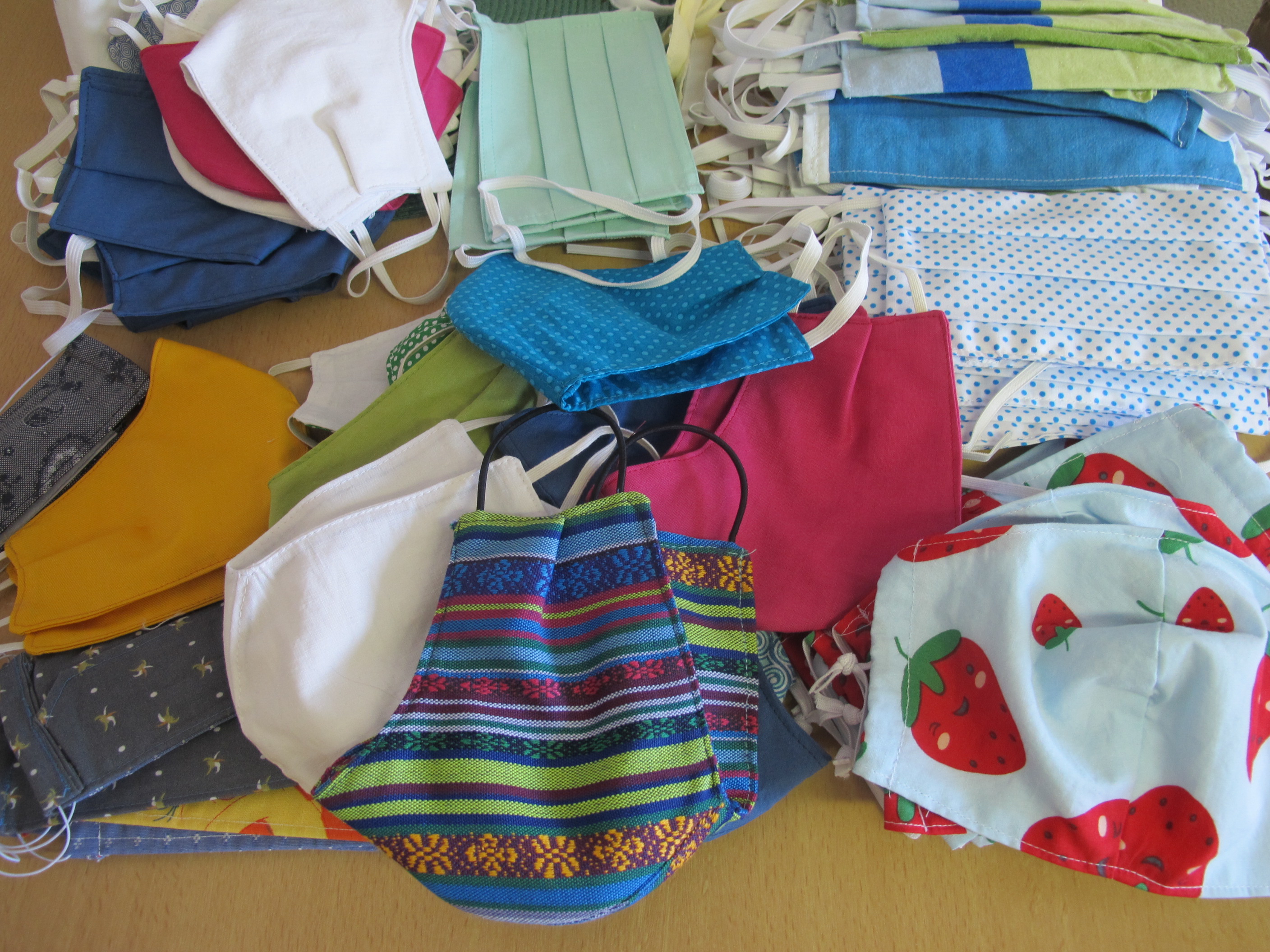 Nicht zuletzt freuen wir uns über gespendete Schutzmasken von Frauen aus der Aasee- Stadt. Die dekorativen Masken sorgen für etwas Farbe im Alltag.