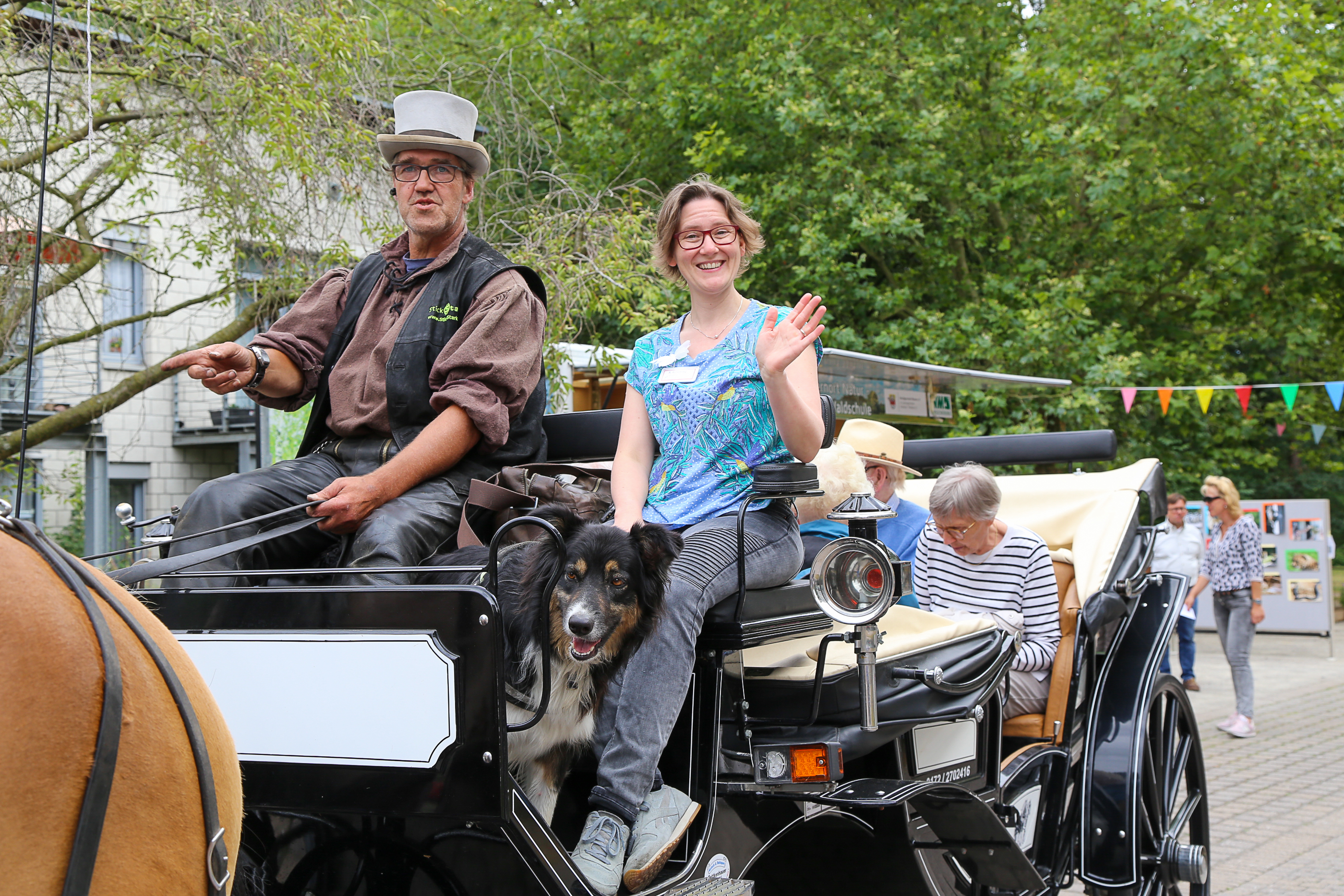 Am Mittwoch, 10.Juli 2019 feierten wir ab 15.00 Uhr unser diesjähriges "tierisches" Sommerfest. Kutschfahrten ins Quartier, die rollende Waldschule, tierische Besucher (Seidenhuhn Anna-Bella, Gänseliesel,ein Kaninchen, eine handzahme Katze und Hunde), Akkordeon- Musik, Clowns, Hochstelzenkünstlerin und andere Aktionsstände sorgten für einen abwechslungsreichen Nachmittag in unserem Innenhof. Kuchen, Pommes, Kartoffelsalat und Bratwurst sorgten für das leibliche Wohl, ein Gläschen Bier oder andere Getränke für das gemütliche Beisammensein.