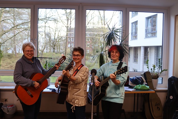 "Komm doch, lieber Frühling...", so versuchten am Montag zahlreiche Bewohner*innen den Frühling zu locken. Ute Gron, Sabine Wiesmann und Petra Gausepohl begleiteten die Veranstaltung mit ihren Gitarren, in fröhlichr Runde wurden zahlreiche Lieder gesungen und der "Frühling ließ sein blaues Band wieder flattern durch die Lüfte..."
