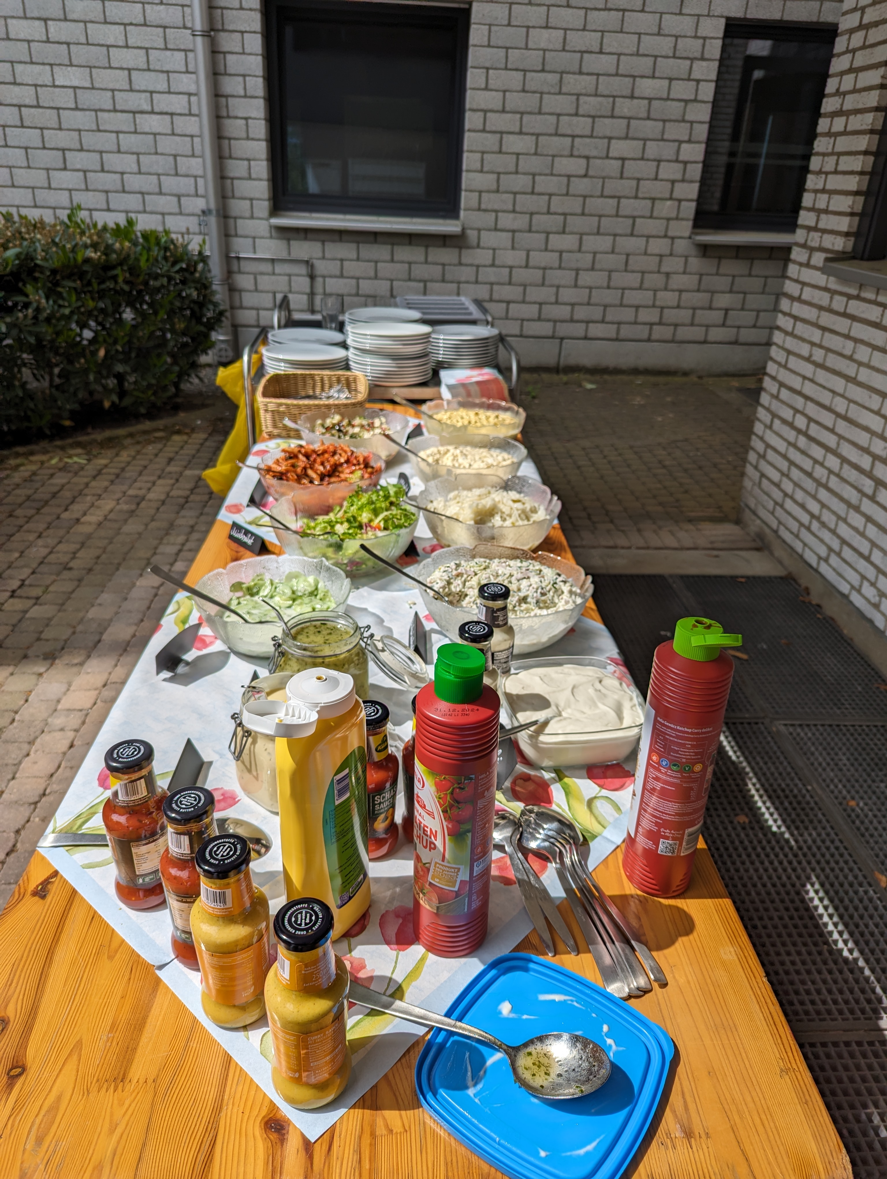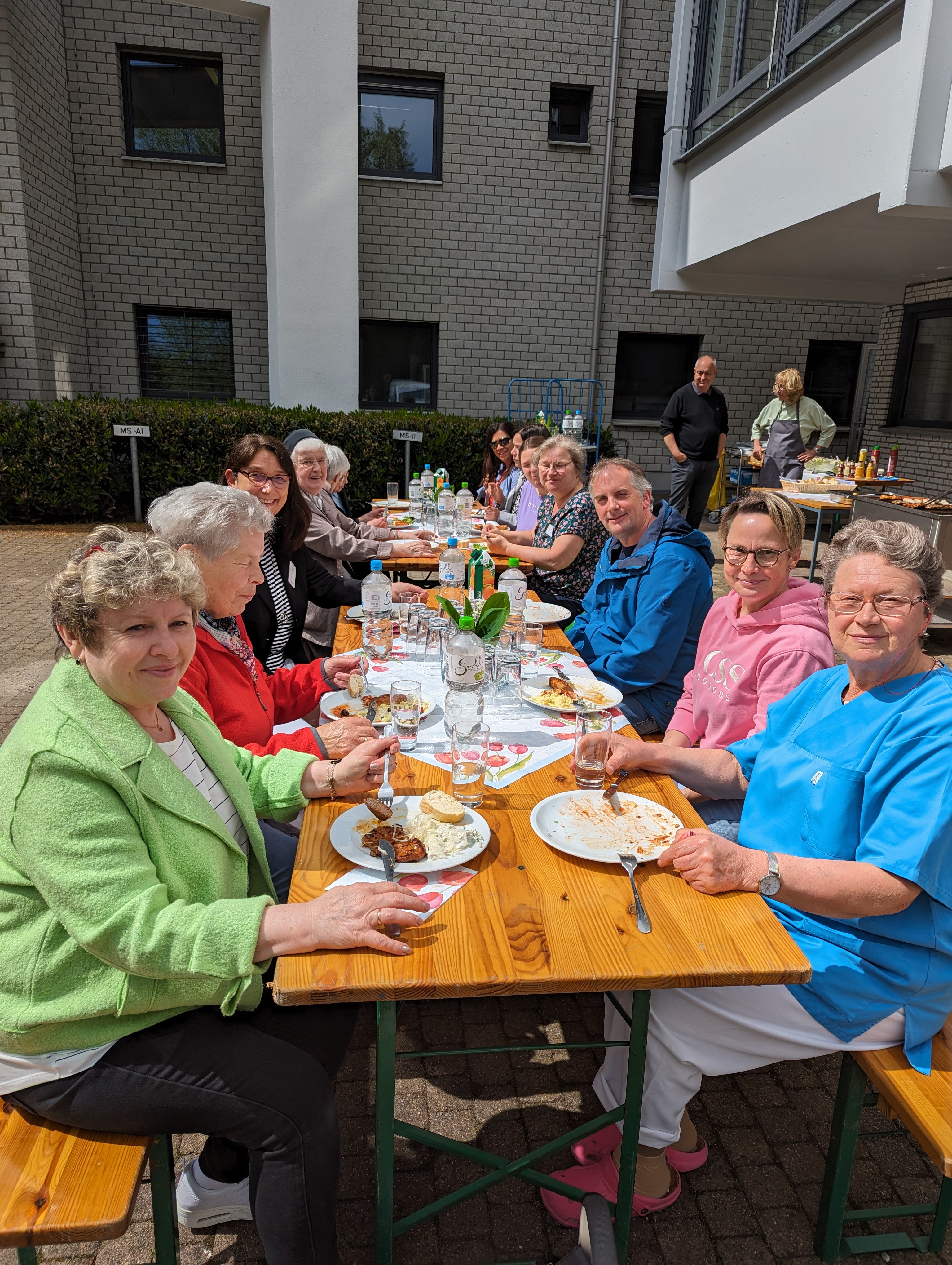 Anlässlich des 50-jährigen Jubiläums der Friedrichsburg luden die Einrichtungsleitung Susanne Bönninghoff und der Geschäftsführer Martin Runde zum gemeinsamen Grillen im Garten ein. Angefangen mit verschiedenen Salatkreationen über diverse Fleisch- und Wurstsorten bis hin zu vegetarischen Grillspezialitäten war für jeden etwas dabei. Bei strahlendem Sonnenschein war die Pause doppelt erholsam.Ein herzliches Dankeschön von der Belegschaft.