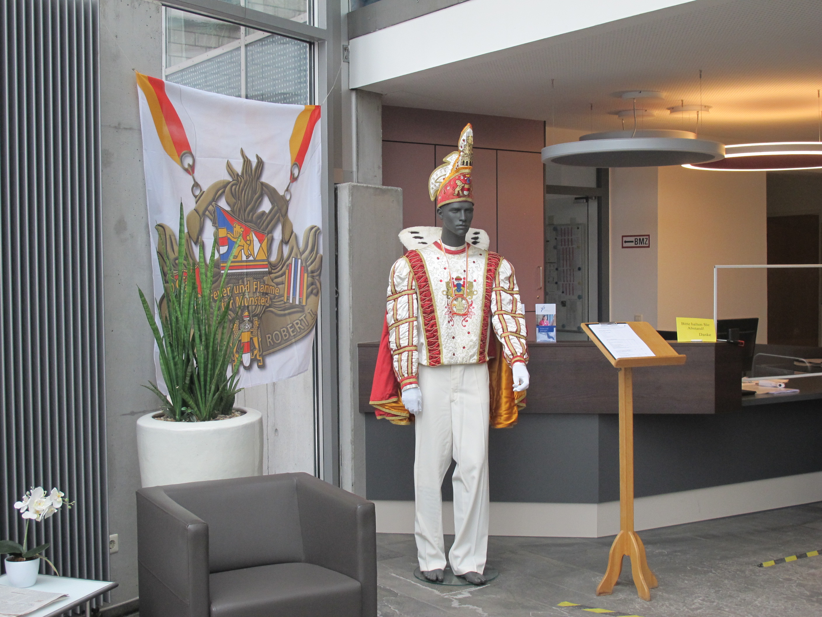 Es begrüßt uns im Eingangsbereich ein ehemaliger Prinz aus Münster zur Freude der Bewohner und Besucher.