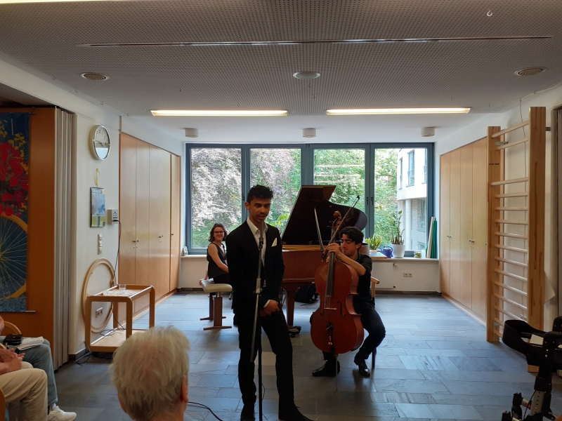 Dank der Unterstützung des Vereins Live Musik Now fand am Montag, den 20.06.2022 ein klassisches Konzert statt. Die Studenten der Musikhochschule Münster Mariana Ribeiro (Klavier), Cristian Ramirez (Gesang) und Karl Figuera (Cello) begeisterten mit Stücken von Schubert, Schumann u.a. . Werke von Robert Stolz, Adolf Steimel und ein Volkslied luden zum mitsingen ein. Herzlichen Dank für den schönen Nachmittag.