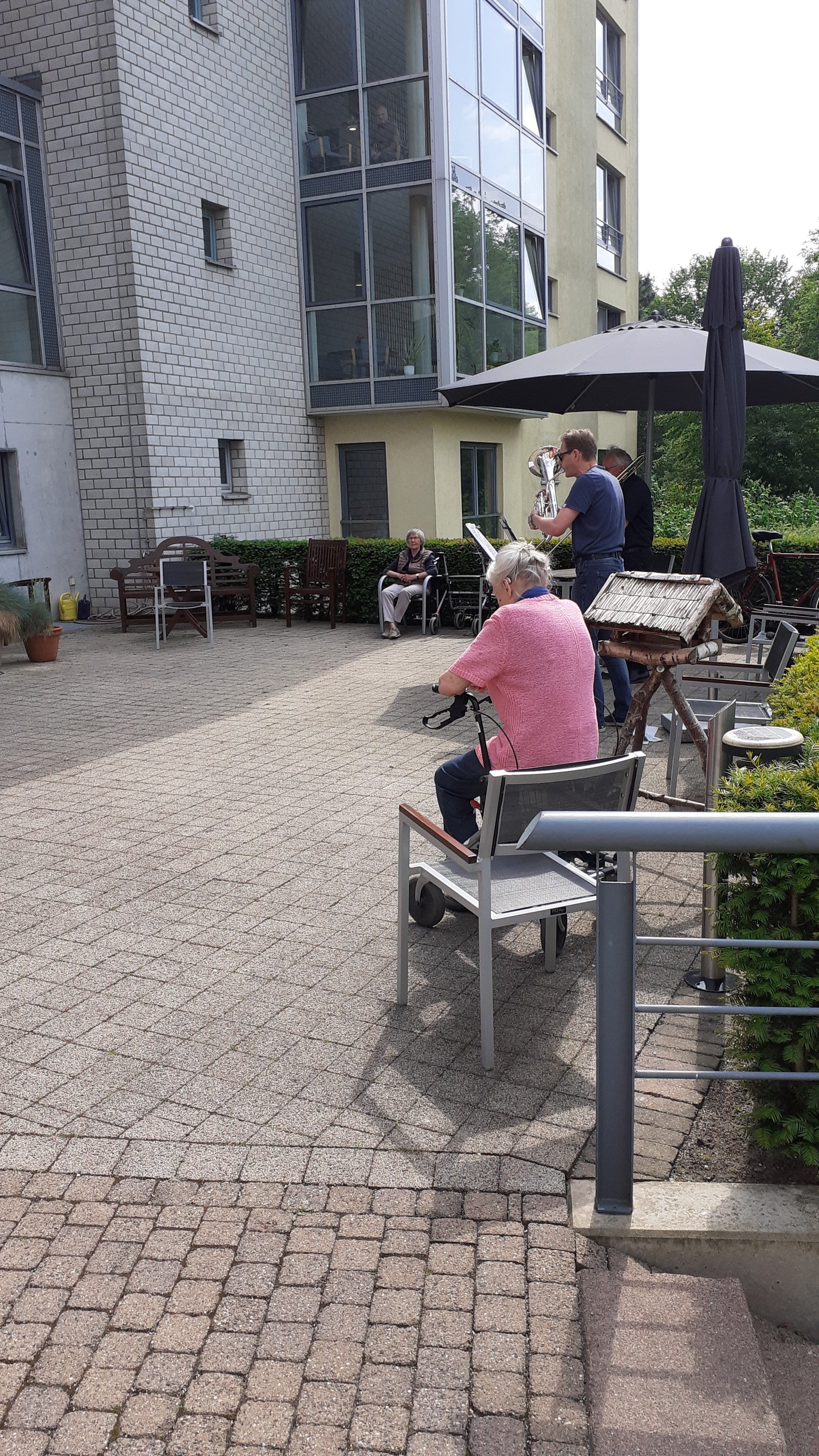 Mit Euphoniume und Posaune besuchten uns gestern Christoph Winter und Helmut Buntjer zu unserem 10. Terrassenkonzert. Beide engagieren sich ehrenamtlich über die Bürgerstiftung Münster. Mit Melodien von Klassik über Schlager und Volkslied spielten sie sich in die Herzen der BewohnerInnen. Vielen Herzlichen Dank!