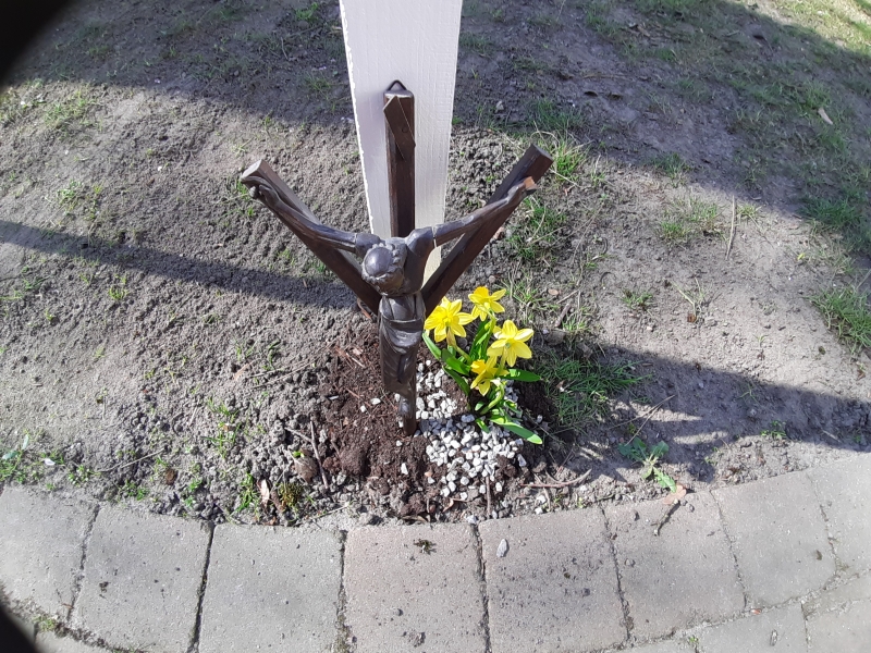 Ein Kreuzweg in Bildern wurde im Garten des Altenheims Friedrichsburg aufgestellt. Vierzehn Stationen beschreiben die letzten Lebensstunden von Jesus Christus. Wenn wir das Kreuzzeichen machen erinnern wir uns unbewusst an den Kreuzweg. Gehen wir heute diesen Weg, nehmen wir besonders das Leid und den Schmerz der Menschen in der Ukraine in den Blick.
