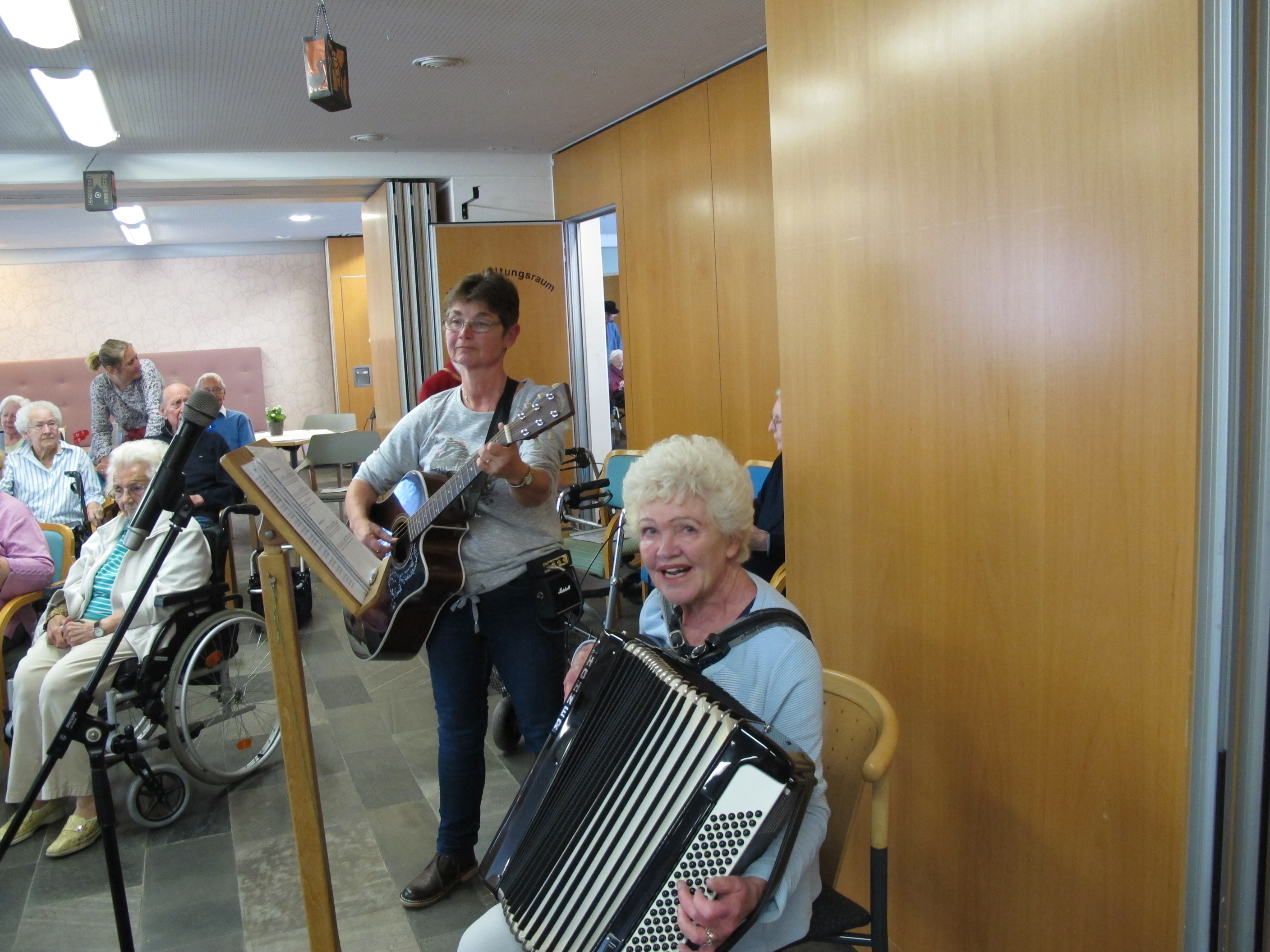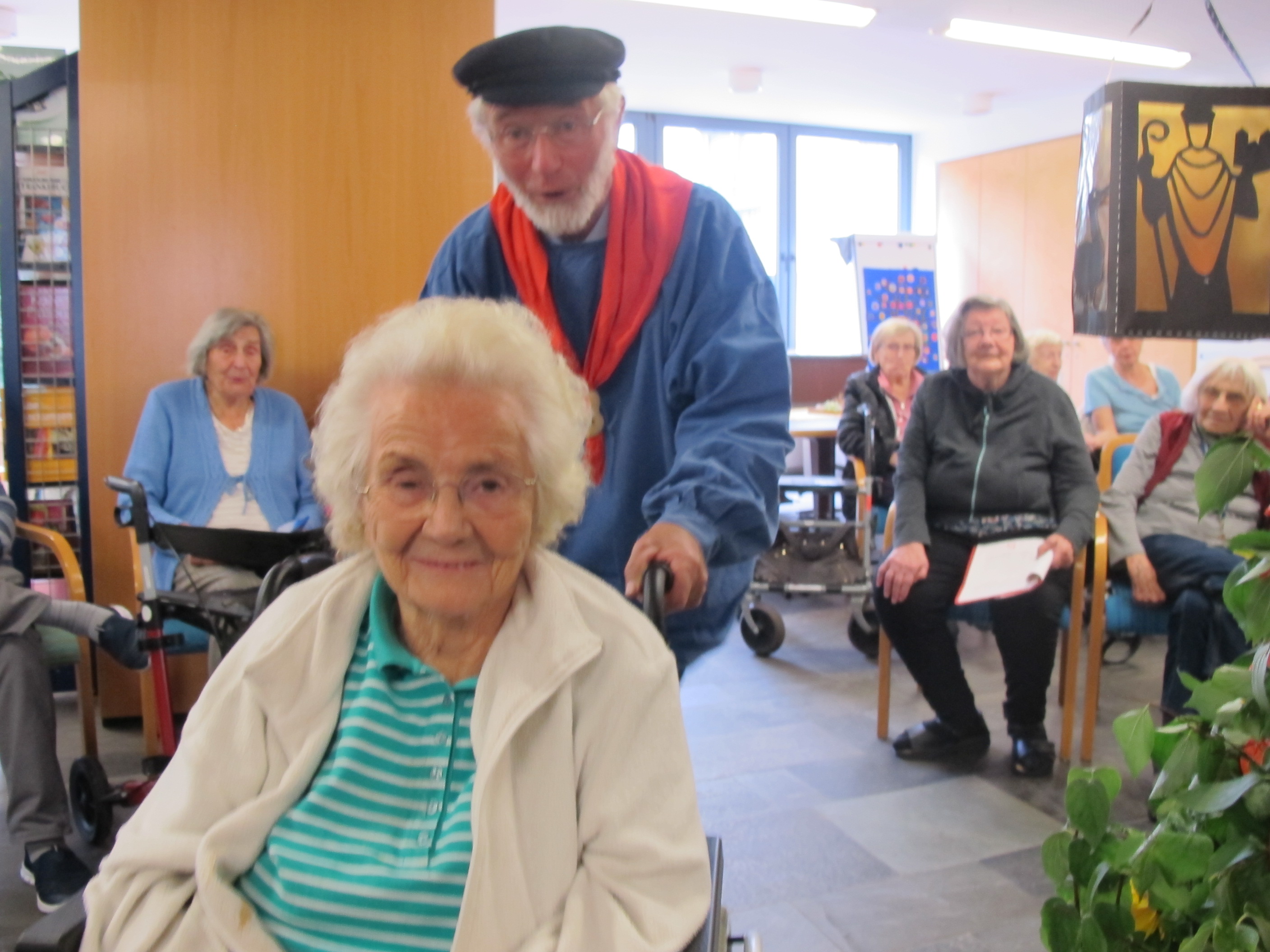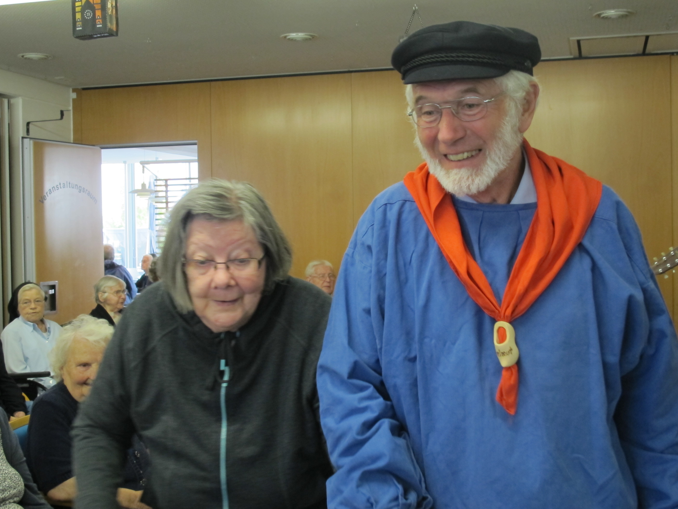 O Buer wat kost Dien Hei? Im Altenheim Friedrichsburg wurde diese überlieferte Tradition des Lambertusfestes am Dienstag, 17.09.2019 weitergeführt. Kinder kommt runter, Lambertus ist munter.... Statt Kindern folgten zahlreiche Senioren, Angehörige und Mitarbeiter dem Ruf. Die schön geschmückte Pyramide wurde mit selbst hergestellten Laternen bestückt. Für die musikalische Begleitung sorgten Helga Möseler mit dem Schifferklavier und Frau Ute Gron auf der Gitarre. Der Buer Helmut Baumeister nahm sich als Kind Dorothee Aschoff (FSJ). Weiter spielten die Senioren als Bäuerin Christa Batzill, Magd wurde Anneliese Wuntke, Knecht Egon Kuhl, Ruen Walter Paprotta und Pottlecker spielte Eleonore Bonenkamp. Abschließend verteilte der Buer gesundes Obst an Teilnehmer und ein Schnäpschen für den Heimweg. Mit dem Lied "kein Schöner Land" klang dann das Lambertusfest aus.