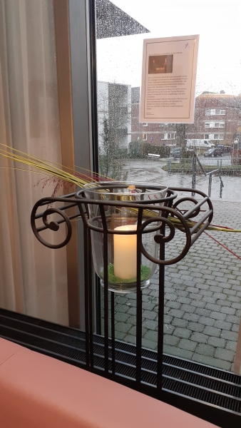 Mit der Kerze im Eingangsbereich solidarisieren wir uns mit der Aktion Lichtfenster. Dabei soll eine Kerze gut sichtbar im Fenster brennen. Wir gedenken der Toten der Corona- Pandemie sowie allen Erkrankten und Angehörigen.