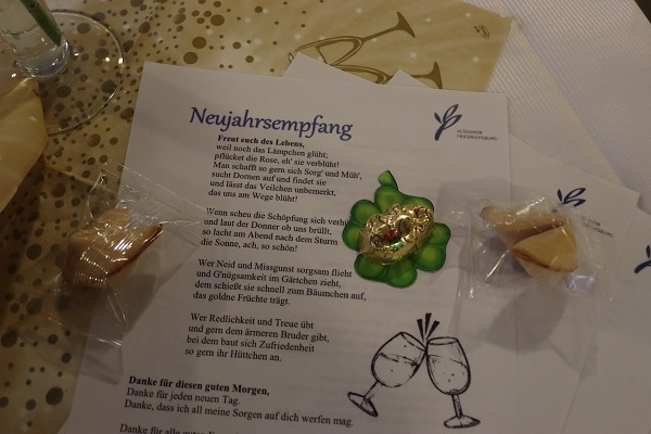 Zahlreiche Bewohner*innen besuchten heute den Neujahrsempfang. Traditionell wurde das neue Jahr mit einem Glas Sekt begrüßt. Im Jahresrückblick des Sozialen Dienstes wurde an viele schöne Veranstaltungen aus dem Jahr 2025 erinnert. Aller Teilnehmer*innen konnten einen guten Wunsch für das neue Jahr in Form eines Glückskekses mitnehmen. Ute Gron, Sabine Wiesmann und Beatrix Beckmann sorgten mit ihren Gitarren für den musikalischen Rahmen. Allen ein gesundes und frohes 2026.
