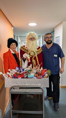 Auch die Mitarbeitenden freuten sich über den Besuch des Nikolauses. Frau Bisping als Angehörige eines Bewohners organisierte den Besuch des Vereins Menschen Direkt e. V.. Die Kolleg*innen freuten sich über die mitgebrachten Süßigkeiten und die damit ausgedrückte Wertschätzung.