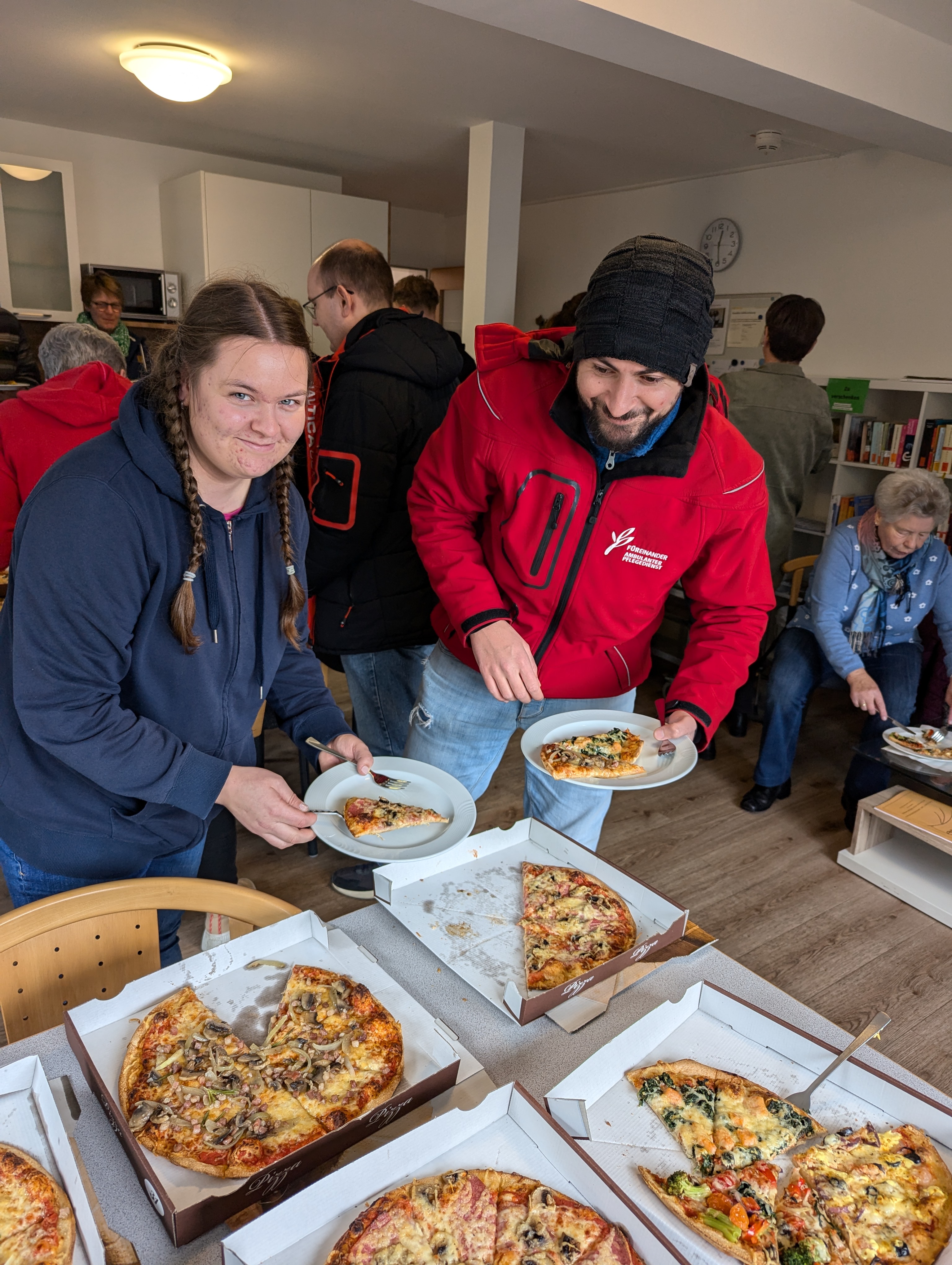 Die letzten Wochen waren eine große Herausforderung, da viele Bewohner*innen und Mitarbeiter*innen mit dem Noro- Virus infiziert waren. Mit Professionalität, Flexibilität und Einsatz wurde diese besondere Situation gemeinsam gemeistert. Als Dankeschön lud die Hausleitung alle Kolleginnen und Kollegen zum gemeinsamen Pizza essen ein.