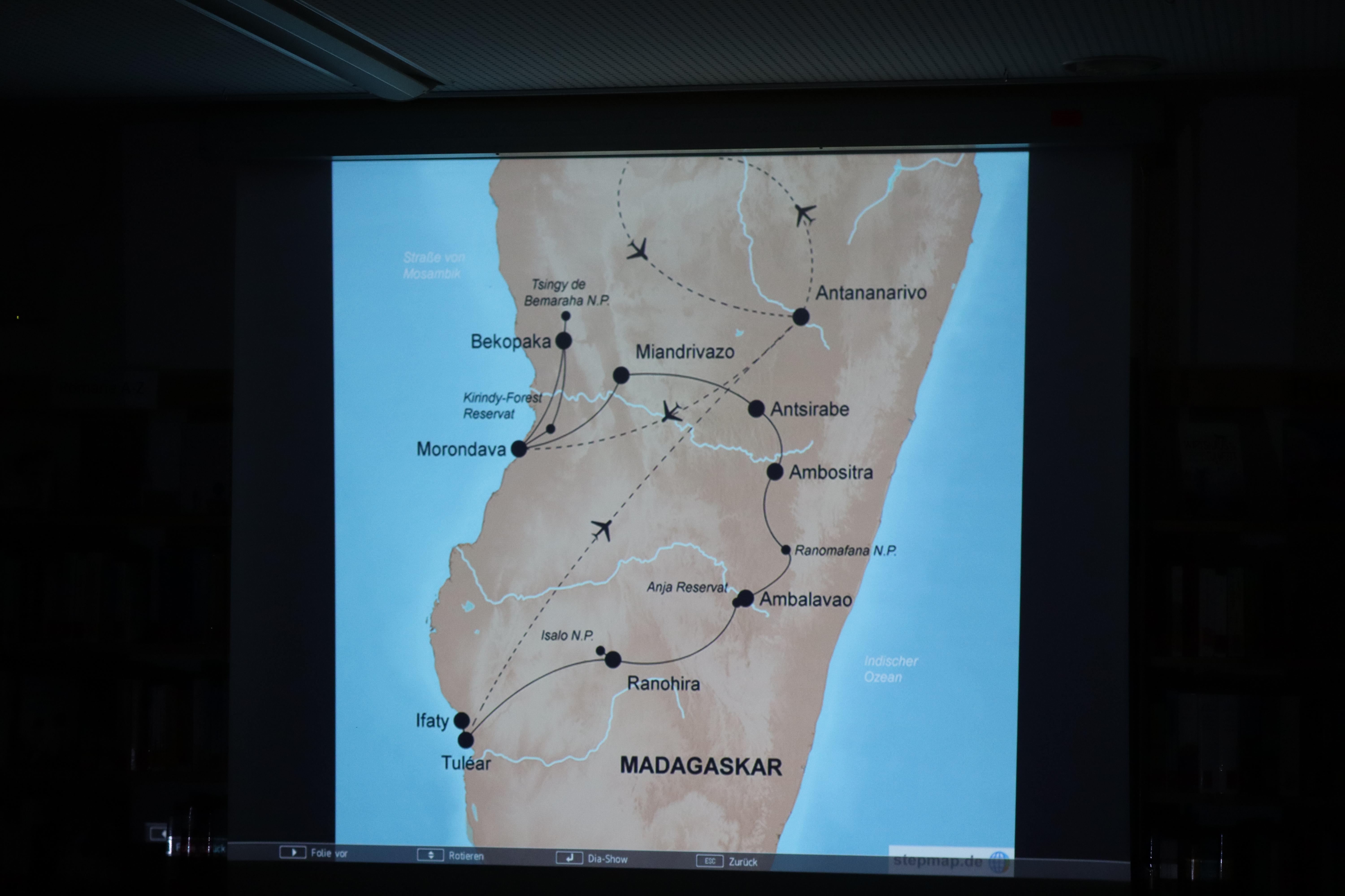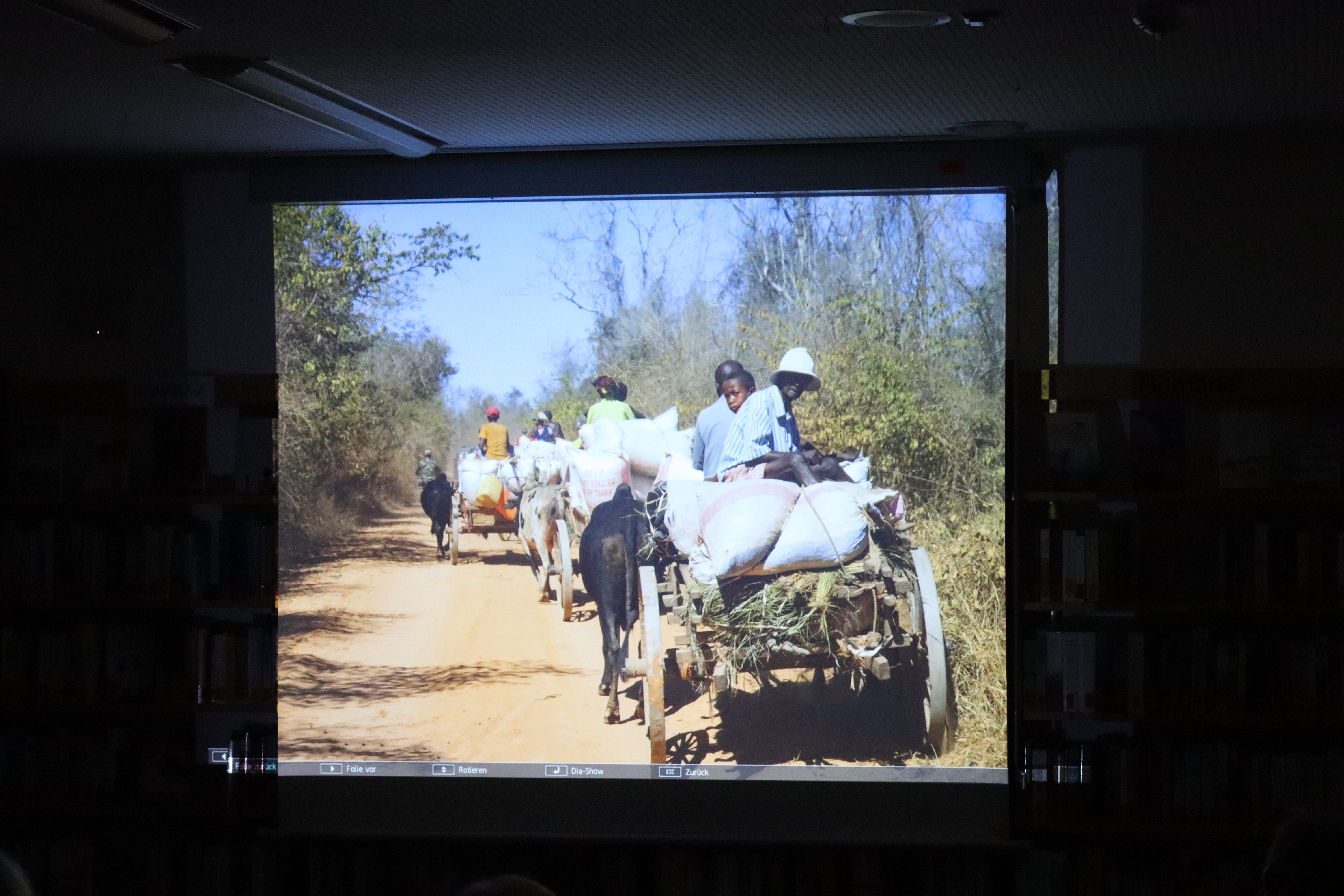 Rainer Kessel berichtete gestern mit eindrucksvollen Bildern von seiner Rundreise durch Madagaskar. Besonders die Boabab Bäume, verschiedenste Chämeleonarten und die landestypischen Lemuren beindruckten die Bewohner*innen. Auf den Bildern der bunten Märkte in den Dörfern, der Häuser und der besonderen Transportmittel wurden die zum Teil ärmlichen Lebensbedingungen der Einheimischen sichtbar. Mit der anschaulichen Schilderung seiner Erlebnisse nahm Herr Kessel alle Bewohner*innen mit auf seine Reise. Vielen herzlichen Dank!