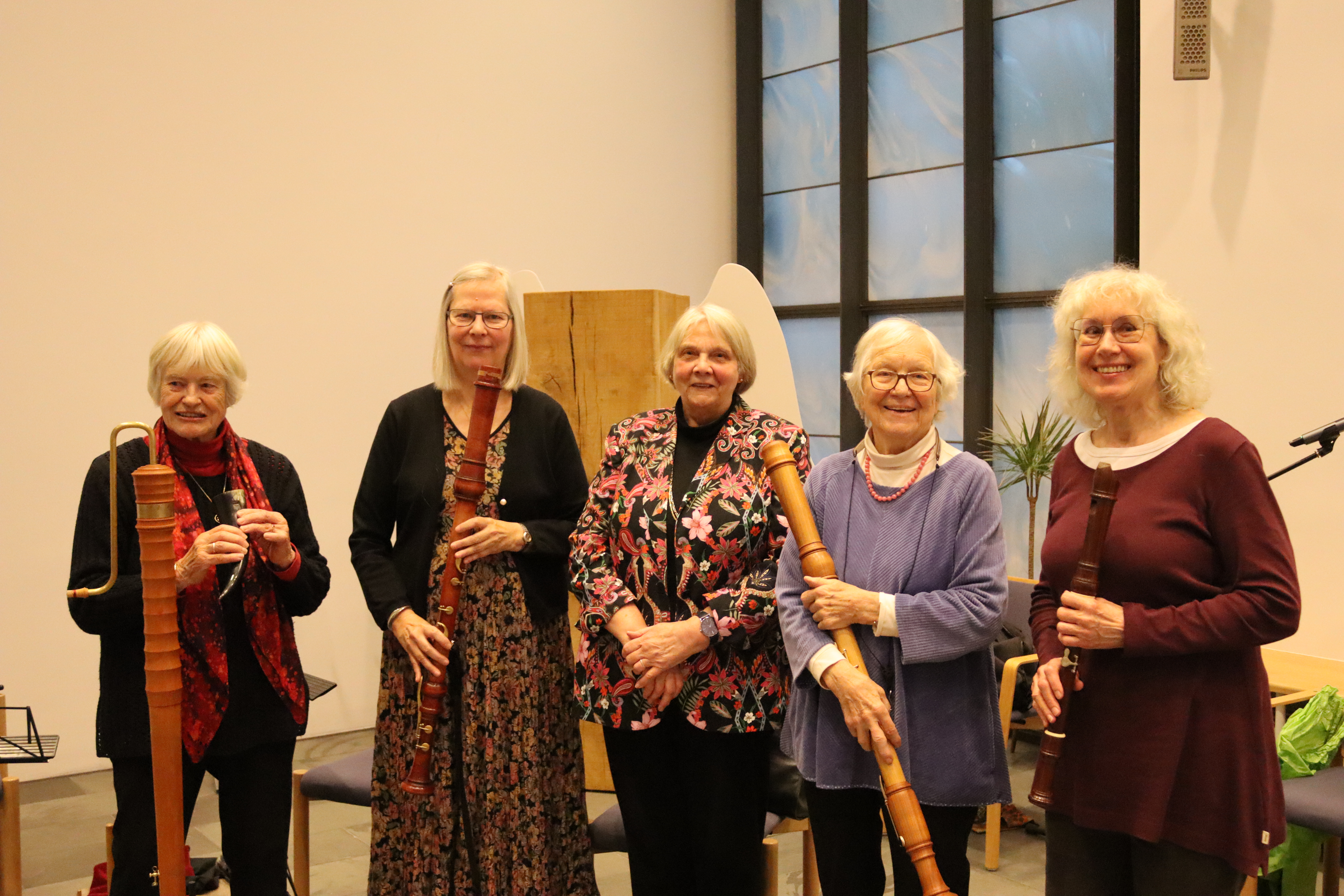 Am Montag, 6.11.2023 fand in der Kapelle ein Nachmittag mit Renaissancemusik und Texten zum Thema Frieden statt. Renate Breilmann, Elisabeth Budde und Rosemarie Lies spielten auf diversen Blockflöten und Gemshörnern mehrstimmig bekannte Stücke der Renaissance. Ausgewählte Lieder wurden von Susan Rohdenburg vorgetragen. Amina Diehl rezitierte bekannte Gedichte wie beispielweise den Text "Ich habe einen Traum" von Martin Luther King. Bewohner*innen freuten sich sehr über den besinnlichen Nachmittag.