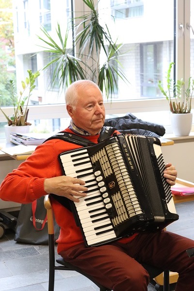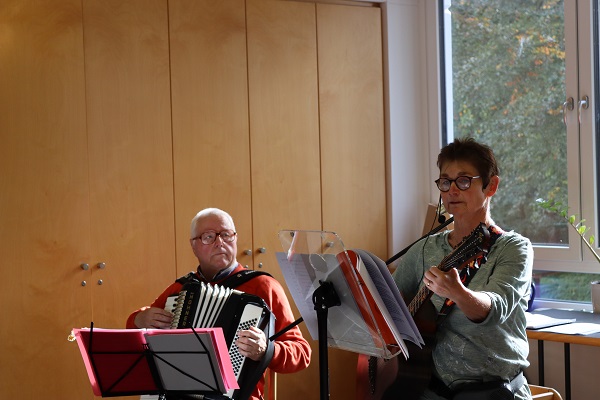 Am Mittwoch, 22.10.2025 fanden sich zahlreiche Bewohner*innen zum gemeinsamen Singen im Veranstaltungsraum ein. Ute Gron (Gitarre) und Werner Fehmer (Schifferklavier) sorgten mit ihrem bunten Programm aus Herbstliedern für gute Stimmung.