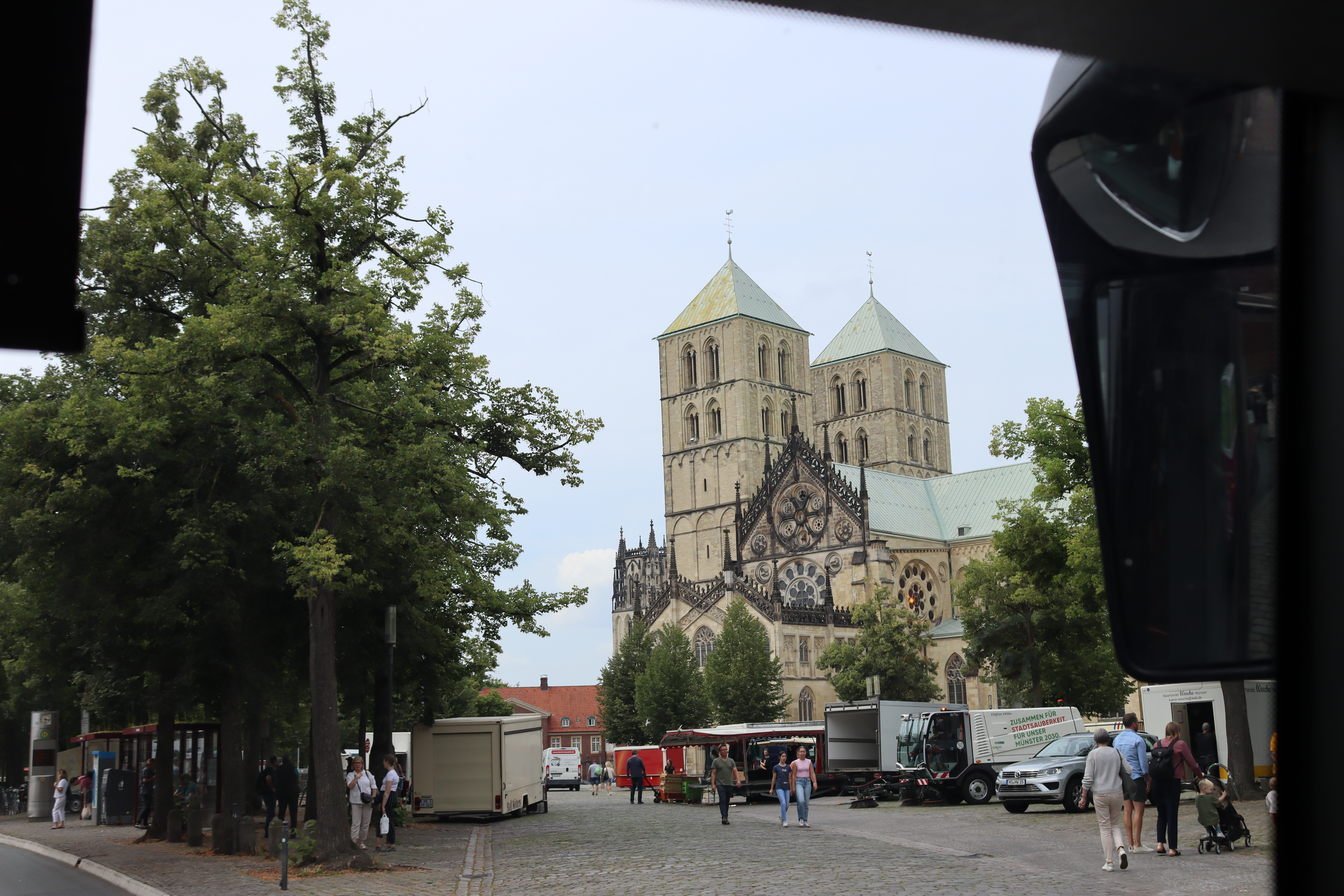 Bei einer Rundfahrt mit dem Bus durch Münster am 31.07.2024 wurden zahlreiche Sehenswürdigkeiten angesteuert. Beginnend beim Aasee fuhren die Bewohner*innen durch die Innenstadt über den Prinzipalmarkt an Lambertikirche, Dom und LWL- Museum vorbei Richtung Schloßplatz. Auf dem Prinzipalmarkt wurden wir kurzzeitig von einem Brautpaar gestoppt, das in der schönen Kulisse Hochzeitsfotos machte. Bei der anschließenden Strecke am Aasee entlang freuten sie einige Teilnehmer, ihre alte Wohngegend wieder zu sehen. Ein herzliches Dankeschön gilt Ute Gron, die als Ehrenamtliche und Busfahrerin diese Fahrt möglich gemacht hat.