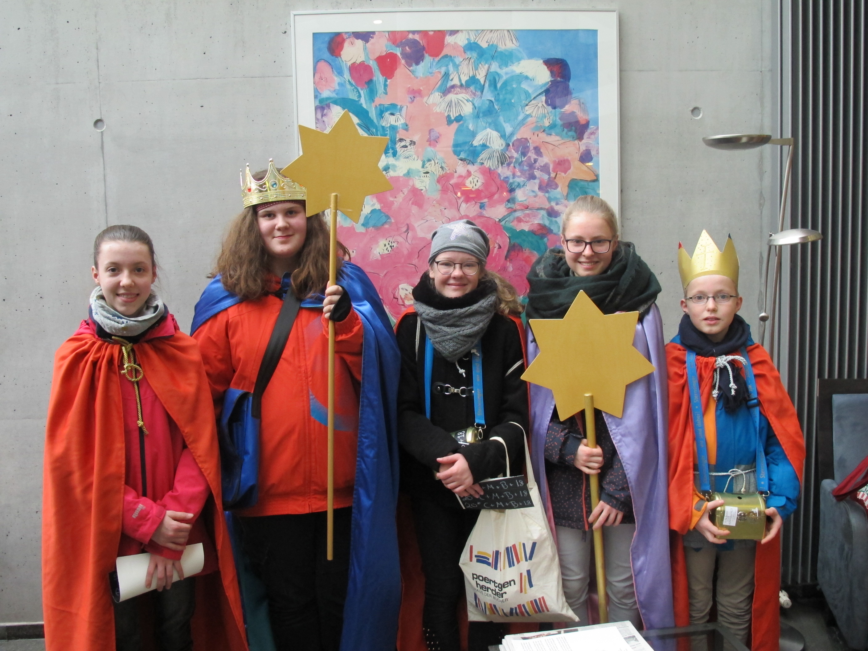 Am 6.01.2018 um 15.30 Uhr besuchten uns die Sternsinger der Pfarrgemeinde St. Joseph Münster-Süd. Die Kinder sangen das Sternsingerlied "Wir kommen daher aus dem Morgenand..", brachten den Segen in unser Haus und sammelten Spenden für das diesjährige Projekt "Gemeinsam gegen Kinderarbeit, in Indien und weltweit".