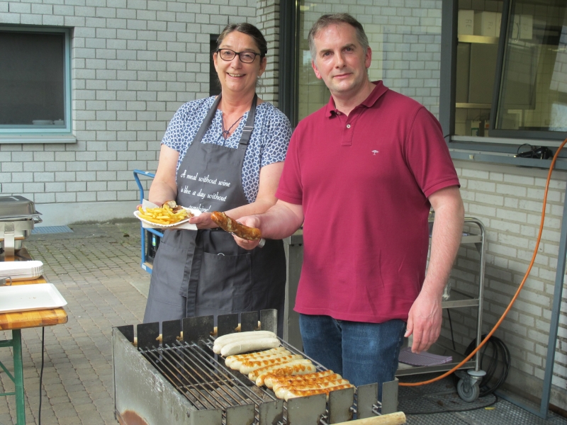 Das Altenheim Friedrichsburg beteiligte sich heute am Tag der Pflege. Die Hauswirtschaftsleitung und der Pflegedienstleiter versorgten alle Mitarbeiter mit Grillwürstchen und Pommes. Als besonderes Dankeschön für ihren engagierten Einsatz in der Pflege erhielten zudem alle eine Rose und einen "Geduldsfaden".