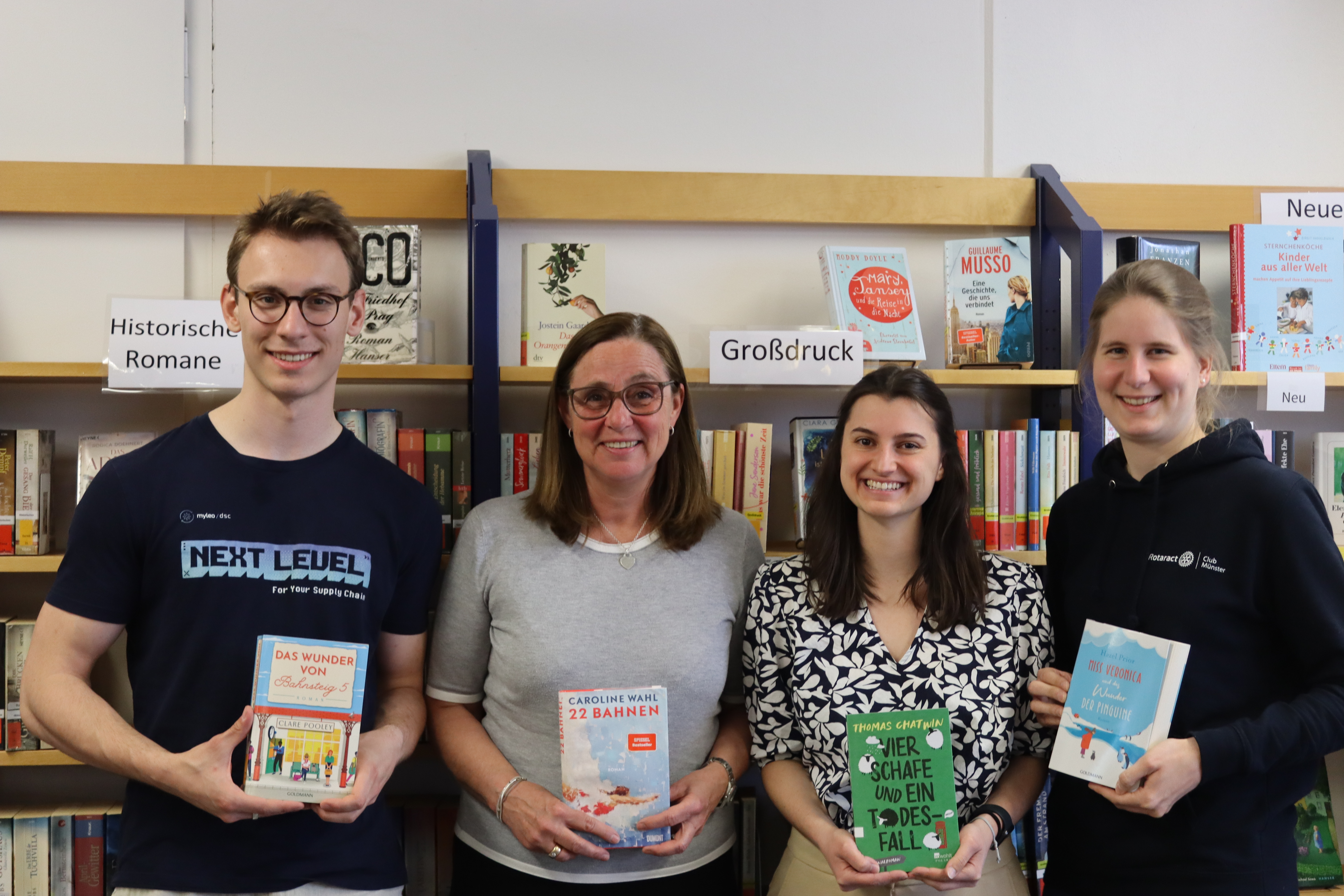 Einige Mietglieder der Rotarct- Club Münster stellten heute im Rahmen des Projekts "Lust auf Lesen" aktuelle Bücher aus unserer katholischen öffentlichen Bücherei vor. Von historischen und autobiographisch geprägten Romanen bis hin zum Krimi wurden unterschiedliche Autoren vorgestellt. Neue Lererinnen und Leser sind hertzlich willkommen. Die Bücherei ist mittwochs von 10.00 Uhr bis 12.00 Uhr und von 15.00 Uhr bis 17.00 Uhr und freitags von 10.00 Uhr bis 12.00 Uhr geöffnet.