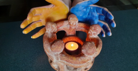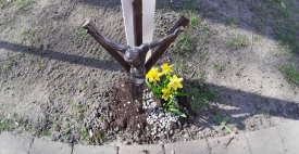 Ein Kreuzweg in Bildern wurde im Garten des Altenheims Friedrichsburg aufgestellt. Vierzehn Stationen beschreiben die letzten Lebensstunden von Jesus Christus.