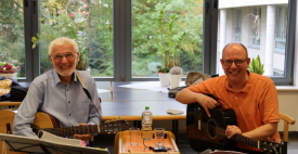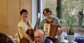 Am Montag, 31.10.2022 freuten sich zahlreiche Bewohnerinnen und Bewohner über ein Mitsingkonzert. Ute Gron (Gitarre), Babara Keller (Akkordeon) und Dr.