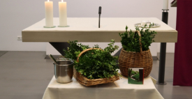 Am Freitag, 24.03.2023 spendete Pfarrer Krampe Bewohnerinnen und Bewohnern auf Wunsch die Krankensalbung. Aus der Gemeinde brachte er Buchsbaumzweige mit und segnete sie.