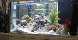 In unser Süßwasseraquarium im Café sind gestern neue Fische eingezogen. Ein Schwarm Neonsalmler, sogenannte Diamantköpfe und zwei Honiggurami laden zum Verweilen und Beobachten ein.